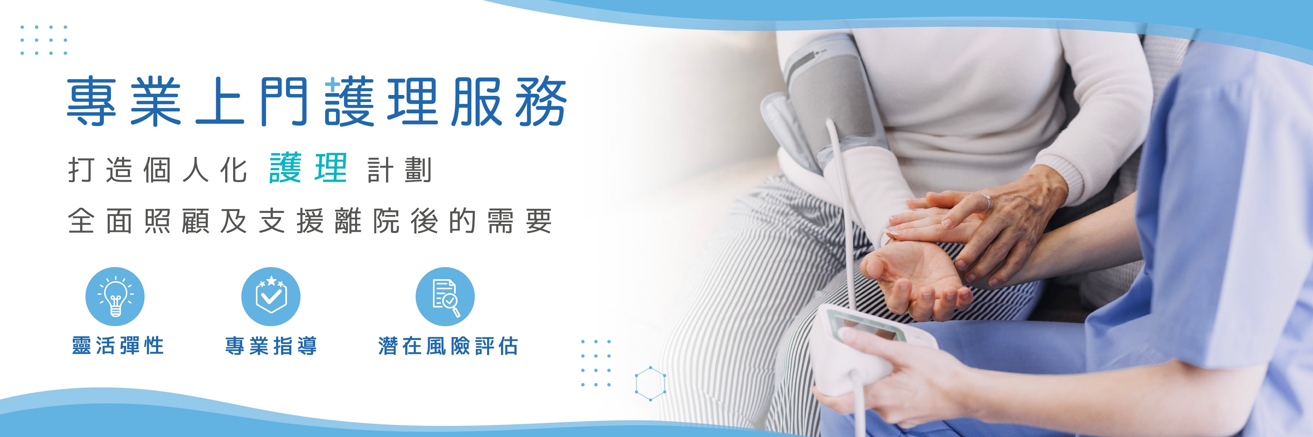 按護理及復康需要,設計適切的上門服務,不論長期還是短期的護理都能夠提供最好的支援和服務,並按需要選擇所需服務時數,不需要為一小時的護理程序支付整日的服務費。